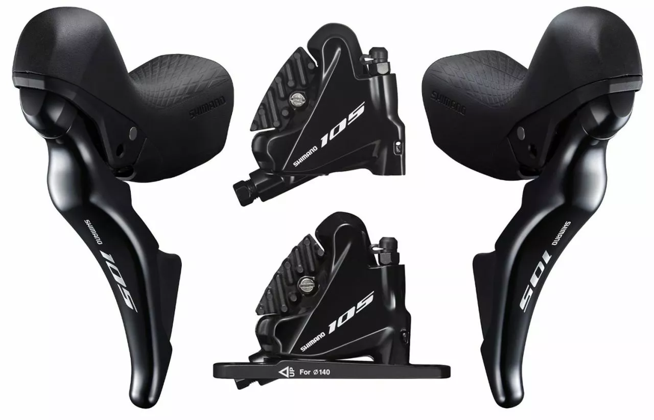 Rendimiento probado en competición: juego de frenos de disco Shimano 105 2×11 velocidades ST-R7025 + BR-R7070