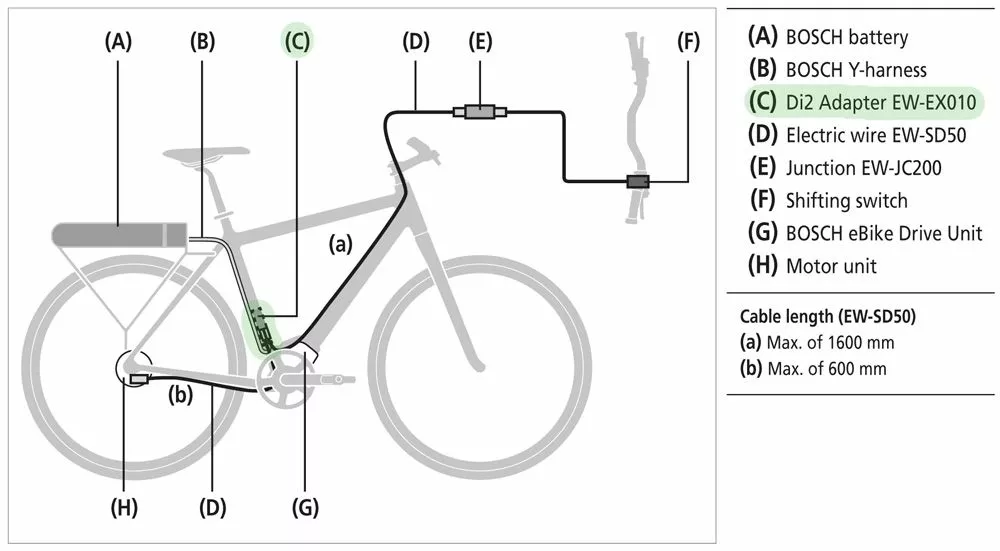- 1 x Adaptador de cable Shimano Di2 EW-EX010 para transmisión Bosch