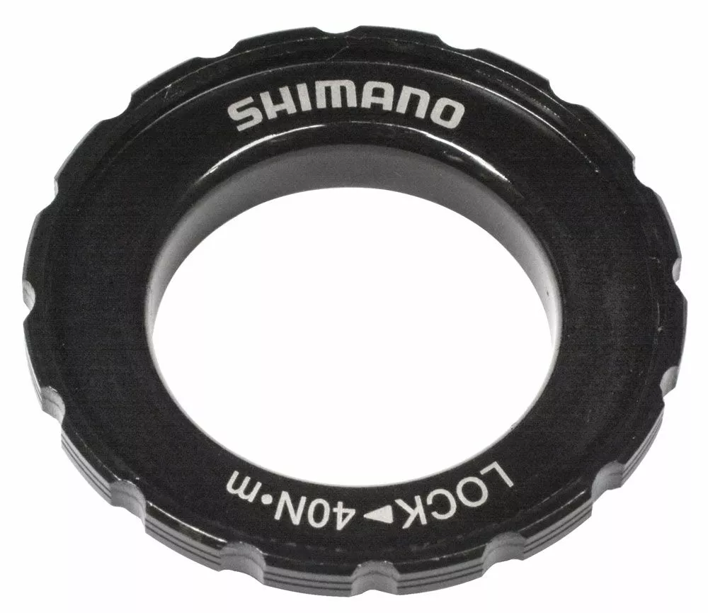 El anillo de bloqueo Shimano Center-Lock de acero con portaherramientas externo para ejes pasantes de 15 / 20 mm.
