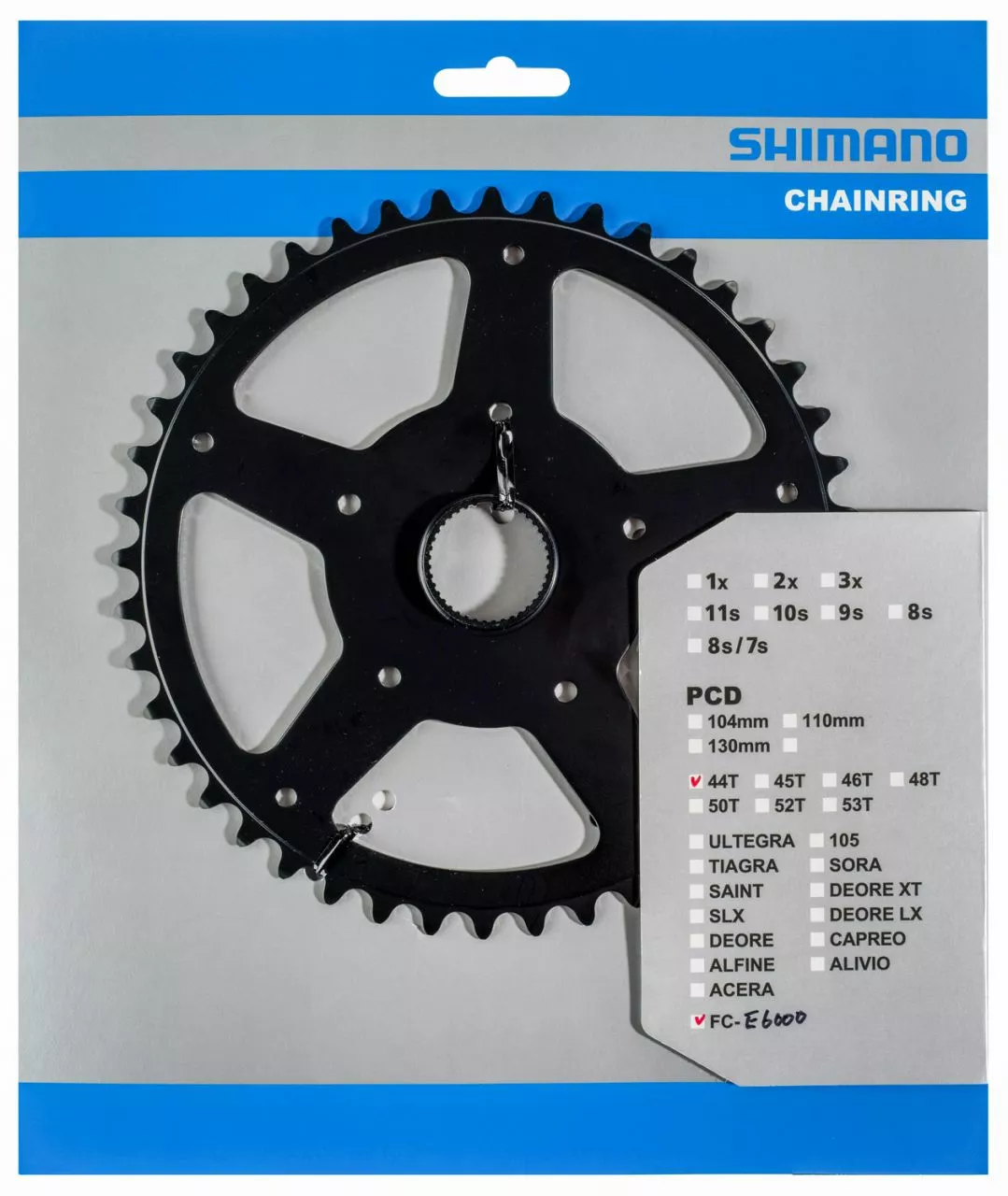 El plato Shimano Steps SM-CRE60 E6000 para transmisiones de 9/10/11 velocidades. Ligereza, forma y aspecto moderno gracias a la probada tecnología de sistemas de SHIMANO.