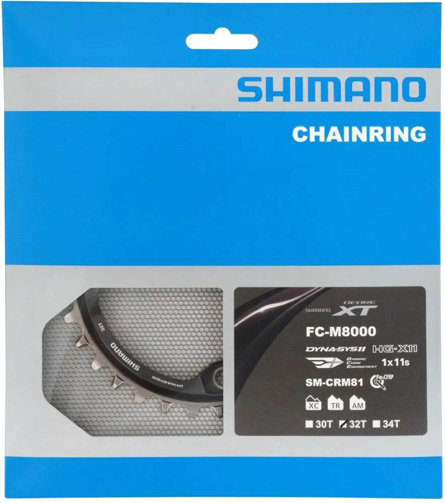 Shimano XT 11-speed chainring SM-CRM81 with 32 teeth and 96 mm bolt circle for 1-speed FC-M8000 crank.
