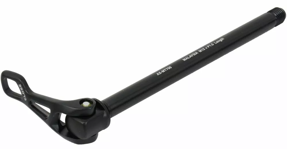 Eje pasante Shimano E-Thru AX-MT700 para la rueda trasera.