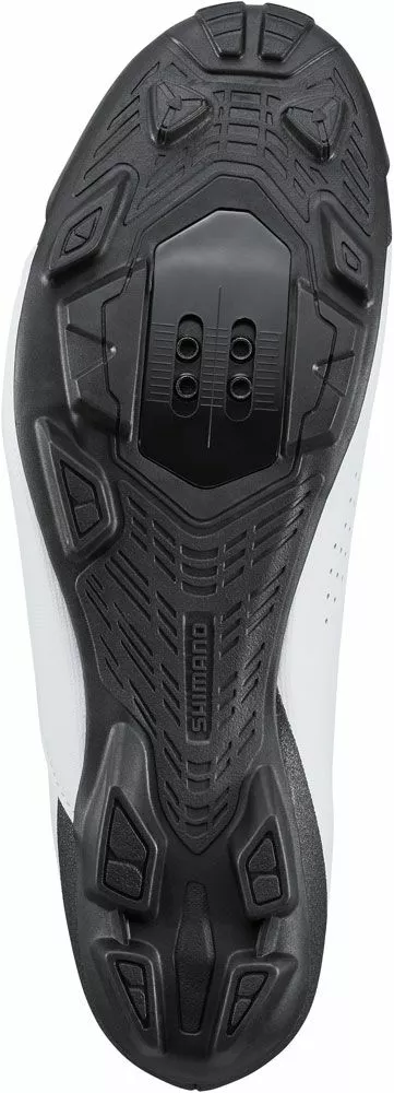 La SH-XC300 es una zapatilla de ciclismo de montaña de alto rendimiento compatible con el sistema SPD y con excelentes tecnologías de ajuste y pedaleo. Una entresuela plana estabiliza y mejora la transmisión de la potencia, mientras que la parte superior de la zapatilla envuelve el pie de forma segura. Esta versión tiene un corte ligeramente más ancho para pies más anchos.