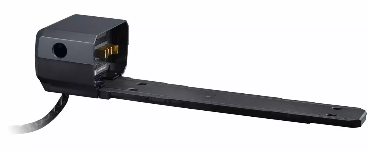 El soporte de batería STEPS BM-E6000 de Shimano para montar la batería BT-E6000 en el portaequipajes trasero. La toma de carga integrada directamente en el soporte permite cargar la batería sin tener que retirarla del soporte.