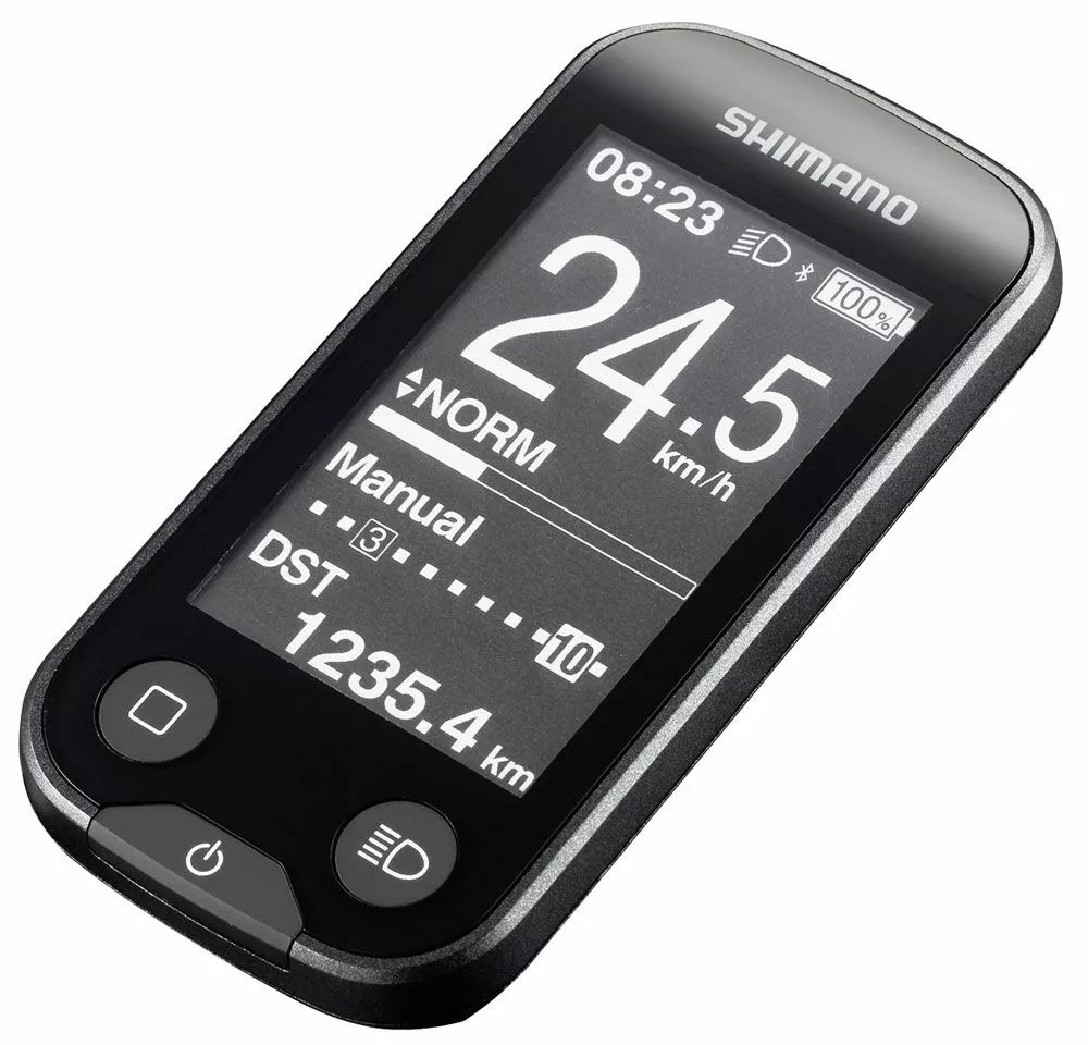 El ciclocomputador inalámbrico SHIMANO STEPS E6100 ofrece numerosas opciones de comunicación a través de conexiones inalámbricas, está equipado con una pantalla grande y fácil de leer y puede emparejarse de forma inalámbrica con aplicaciones de terceros.