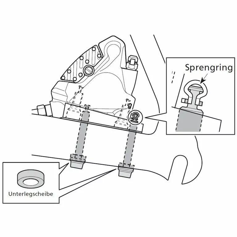 - Montaje de la pinza de freno detrás de las vainas (rotores de 140 mm)
